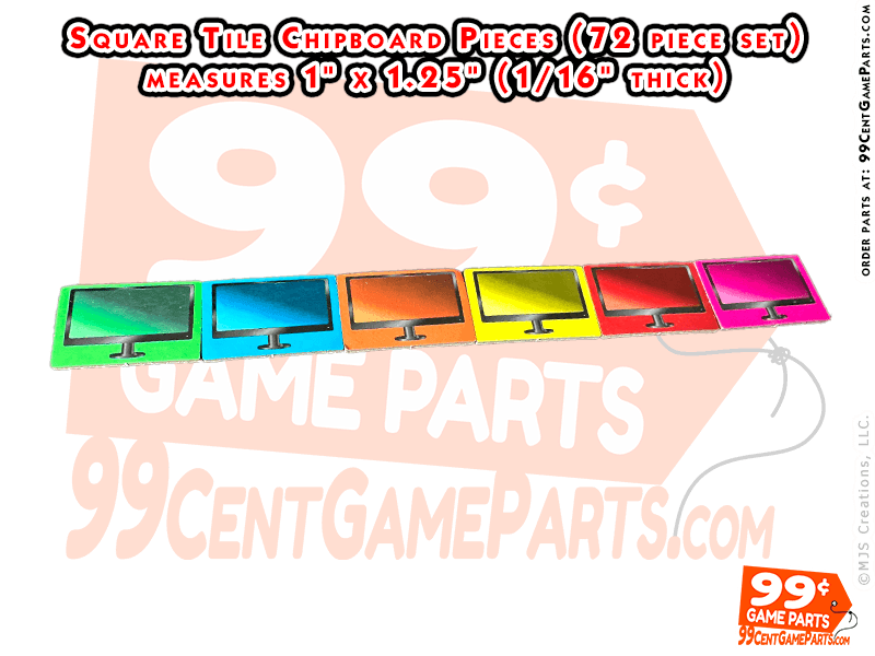 Pre-printed Chipboard Rectangle Pieces/Replacement Custom Game Pieces. Front has numbers on a TV monitor and back has no numbers, just the TV monitor (add your own numbers with a marker!)
